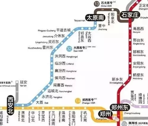 中国的高铁(高速铁路)地图人民币 |